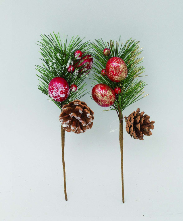 RAMONE MT.2 PVC VERDE NEVATO DECORATO PIGNE E BACCHE ROSSE