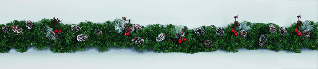 FILO VERDE MM.80X2.7 DEC.PIGNE/GHIANDE ROSSE/RAMETTI INNEVATI IN BST